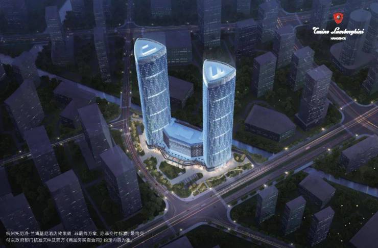 【建筑规划】:T1、T2为250米双塔楼(60层,T1写字楼、T2杭州托尼洛·兰博基尼行政公寓)、T3裙楼。