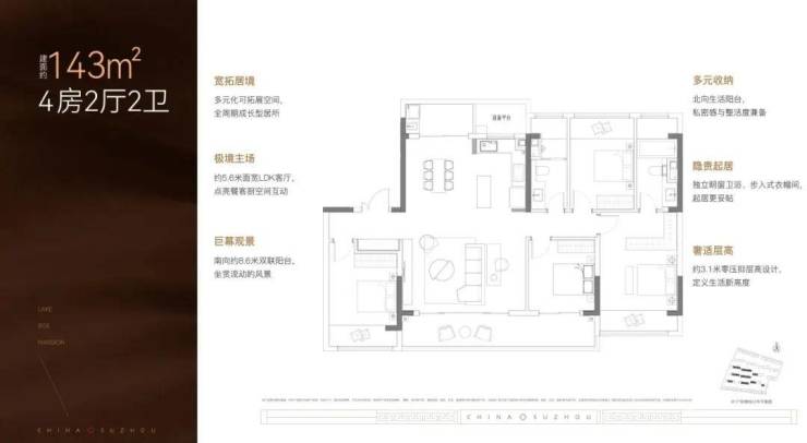 四室两厅两卫:建面143平方米,总价约360万元/套起