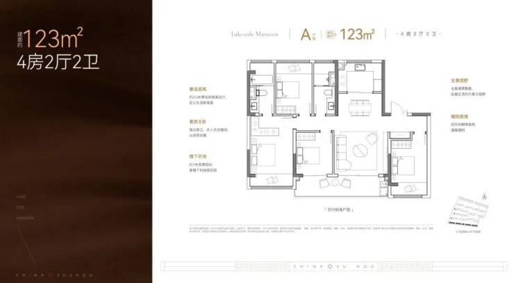 四室两厅两卫:建面123平方米,总价约297.5万元/套起