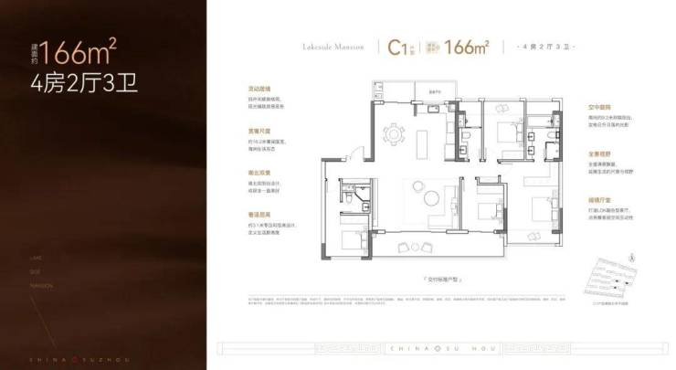 四室两厅三卫:建面166平方米,总价约435万元/套起