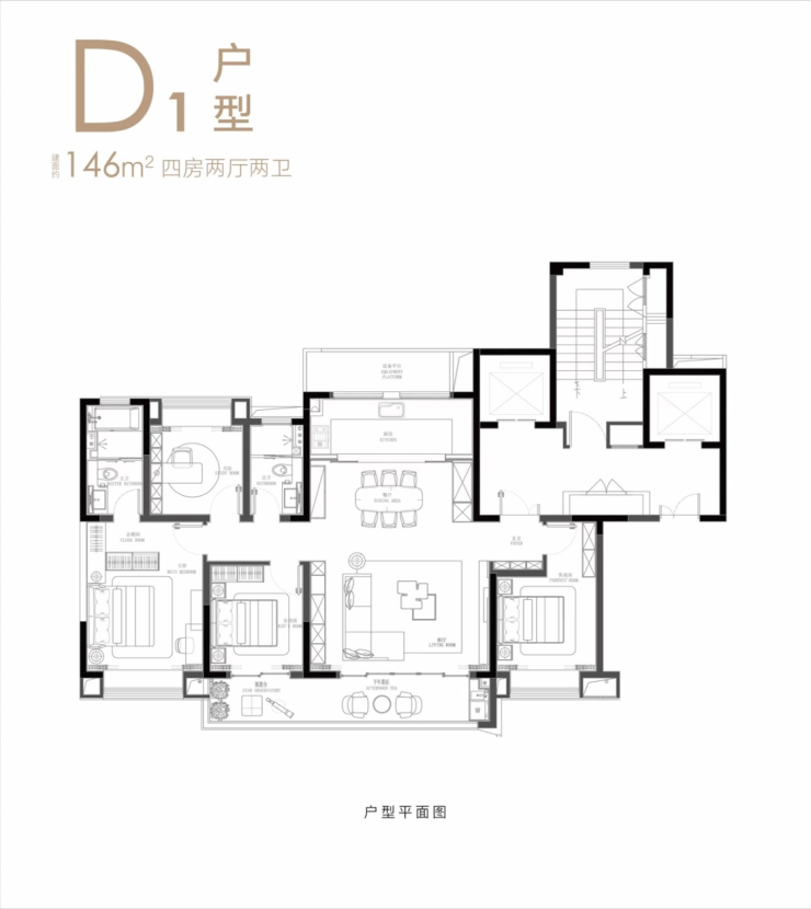 146㎡ 20,800–21,200元/㎡ 305万–310万元 4室2厅2卫,大横厅+独立衣帽间,改善首选