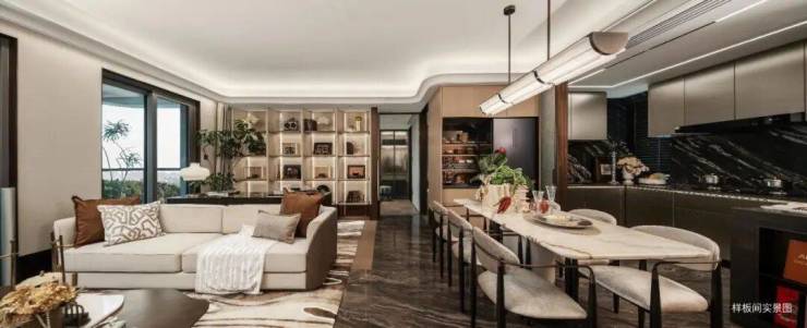 ✦客餐厅地面 1.8m×0.9m 大砖密拼,整体通透大气