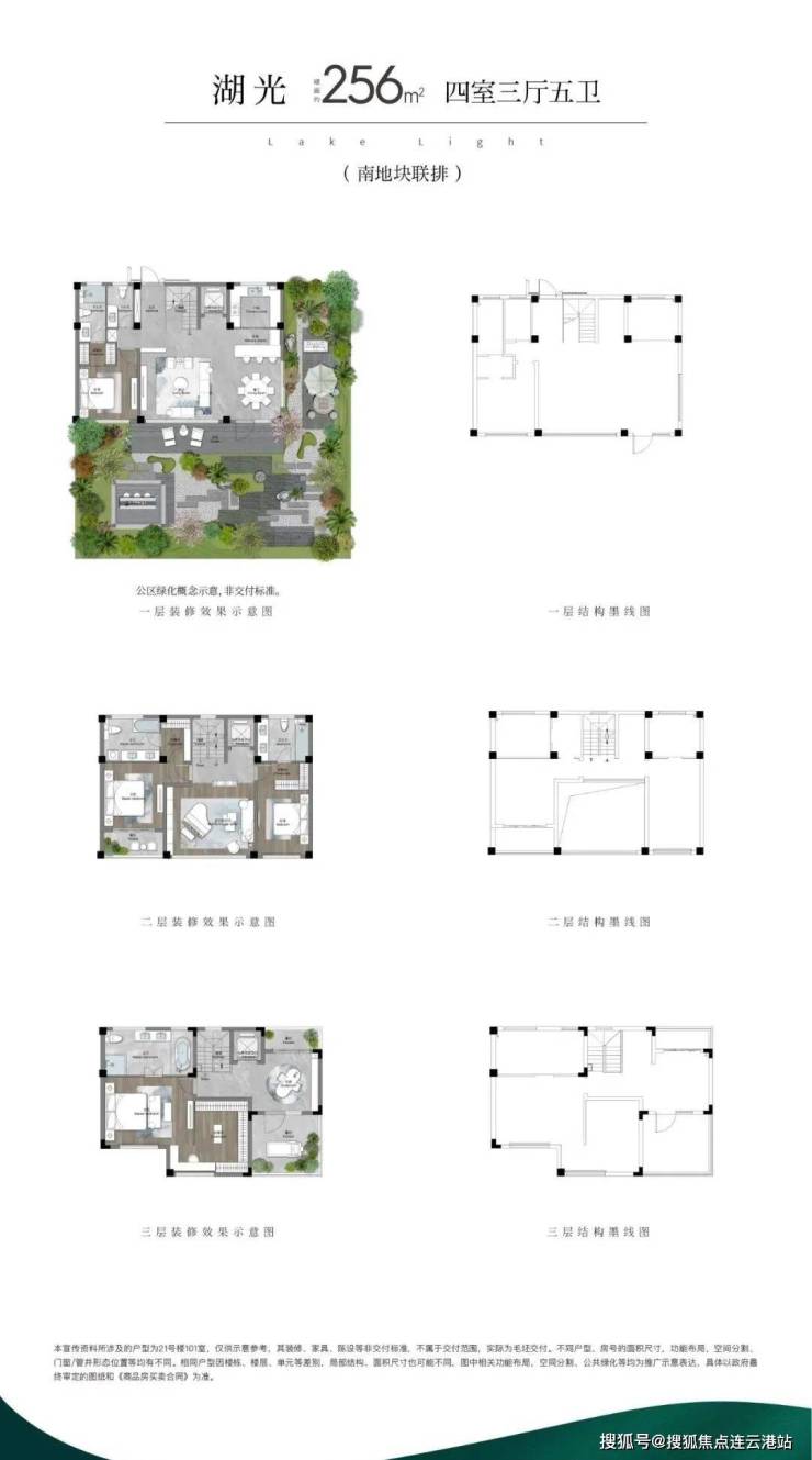 (1)联排:打造约246m²、约256m²(边户)、约280m²三个户型面积,以迭代的联排作品,致敬真别墅的回归