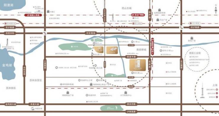 轨道交通:规划中的地铁K1线(连接苏州轨交11号线)辐射项目,昆山南站直线距离约6.5公里