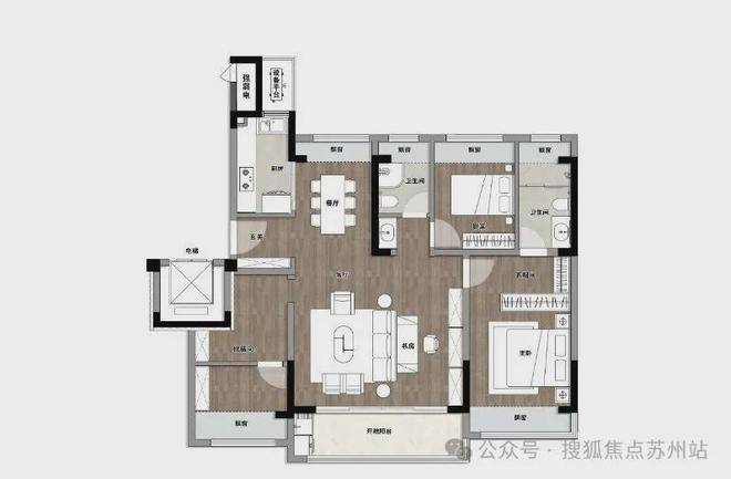 三卧四开间朝南 | 入户电梯独立空间 | 双联阔景阳台 | 超大开间厨房外接餐厅 | 主卧宽奢套房
