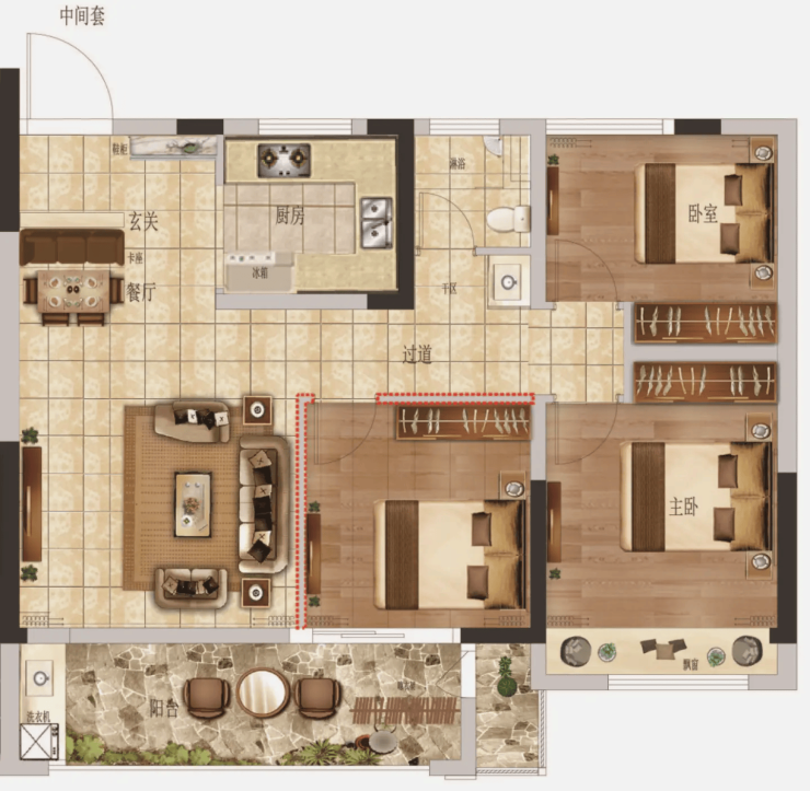 89㎡三房两厅:客厅开间超3.6米,主卧带飘窗,得房率约82%;