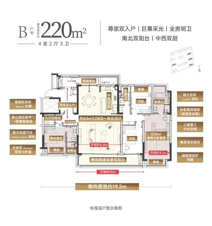 精装标准:威乃达/欧派橱柜、劳芬/汉斯格雅卫浴、全铝板外立面