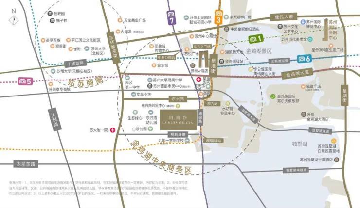 自驾路网:紧邻东环快速路、南环快速路、娄江快速路、金鸡湖大道、常台高速,形成“五横两纵”立体网络,10分钟上高架,20分钟抵达上海虹桥枢纽。