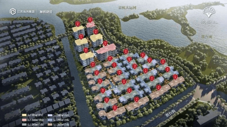 规划:包含6栋9层四代洋房(约185-300㎡)和23栋3层合院别墅(约245-550㎡),全盘仅196套。