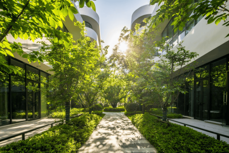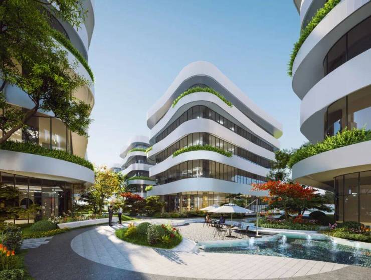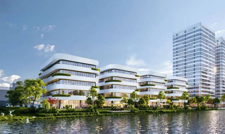 生态办公:20%绿地率+滨河慢跑道的健康办公环境