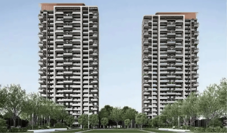 项目内部打造“森系景观系统”,通过奇偶层错位布局实现“户户有花园”,营造私密绿化空间。