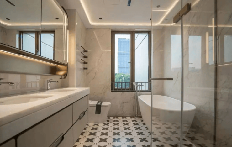 室内精装大量使用石材,除了大门、公区、会所等区域,室内空间同样精心运用了皇家白玉、劳力士灰、安第斯雪景、希腊木纹等高端石材,其独特纹理与温润质感,为空间注入了自然优雅的格调。在大型设备方面,大金中央空调、菲斯曼地暖、霍尼韦尔新风系统等国际品牌产品,彰显了不凡的品质。厨房配置了方太油烟机、燃气灶,以及博世蒸烤一体机、洗碗机、冰箱等高端电器。卫生间则选用了杜拉维特盥洗盆、马桶、浴缸,搭配汉斯格雅龙头、淋浴花洒,在同价位项目中实属罕见。