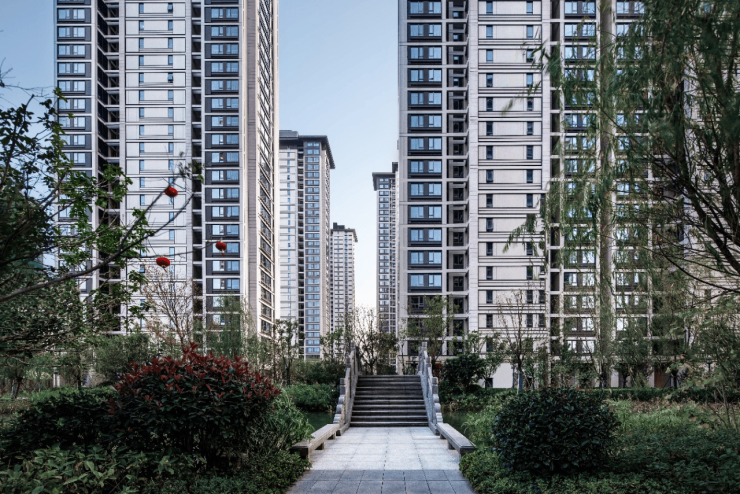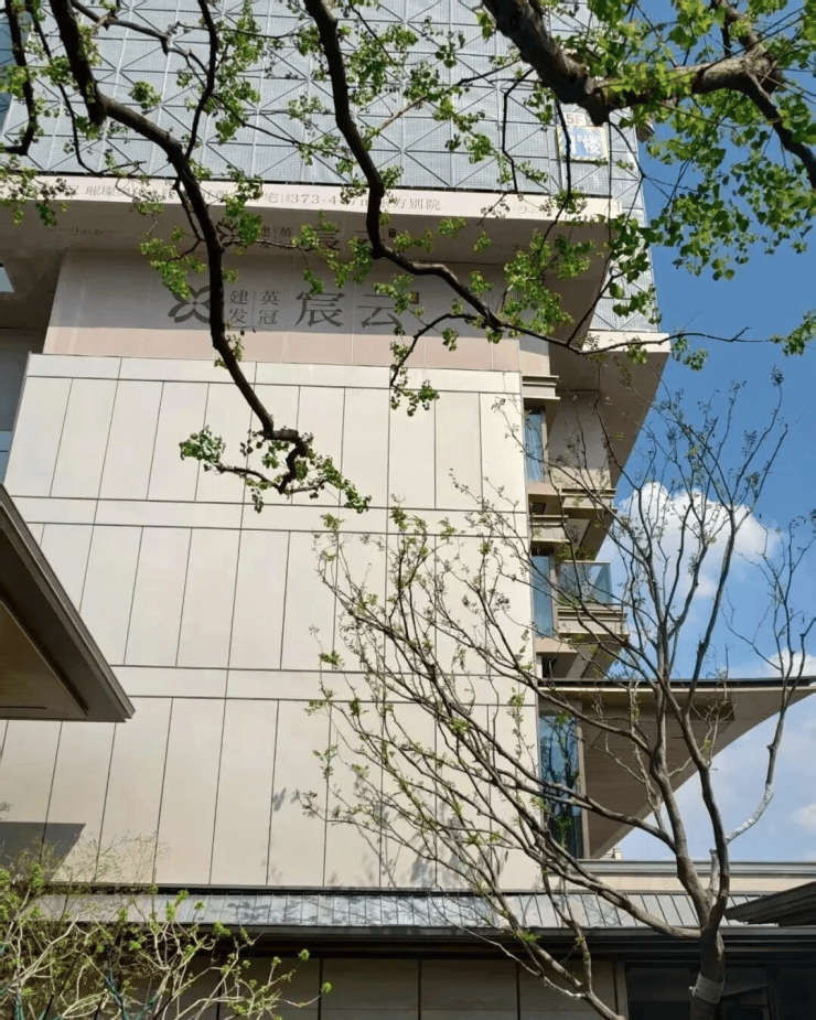 大平层建筑立面以大面积铝板、首层局部石材及大面积玻璃构成,屋顶建发中式标志性的飞檐设计,美观的同时还比较显格调。
