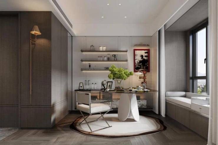同时奢创度假酒店式双套房主卧,主卧小家化,集合睡眠、收纳、美妆、休闲榻、轻办公、迷你吧多种功能一体化,双倍的空间奢宠,可以轻易满足多孩家庭或三代同堂;主卧更创新打造了270°转角飘窗,视野与采光不与凡同。