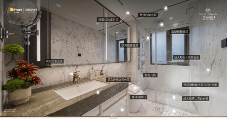 高层:西门子厨电、杜拉维特/高仪卫浴、日立中央空调、全屋地暖、华为智能家居。