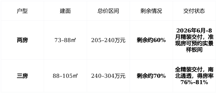 💰 在售情况:准现房交付,2026年中旬搬入,房源充足,可选性强