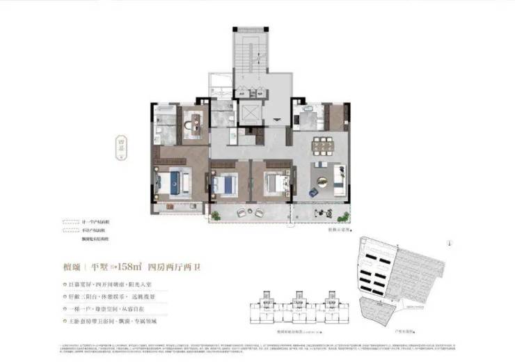 125㎡洋房:大横厅+双联阳台,四开间朝南