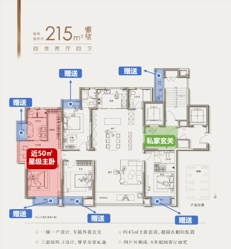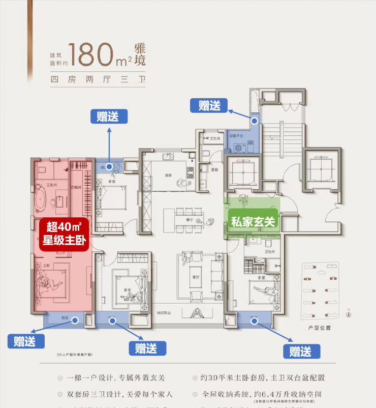 包括市面上不常见的一梯一户、超配设备平台、双套房三卫生间设计等等,从空间到功能,堪称昆山大平层里的教科书。