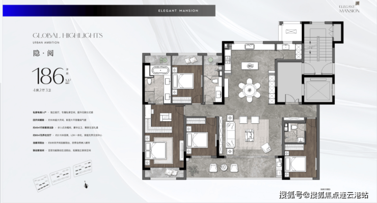 【户型亮点】私家电梯入户+独立入户玄关,私密性强。约5.6米的横厅+面宽约8.6观景阳台,采光、通风性能佳。双套房设计,让改善更彻底。