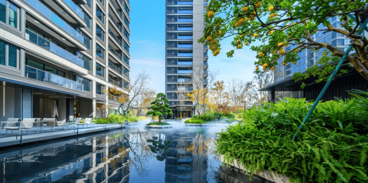 园林景观:打造“一廊三心九园”的景观布局,包括曲桥风荷、颐养花园、闲月信步等九大主题园区,以及潮映会客厅、U-YOUNG健身空间、红叶空间和奇妙空间四大架空层空间,满足不同年龄段人群的需求。