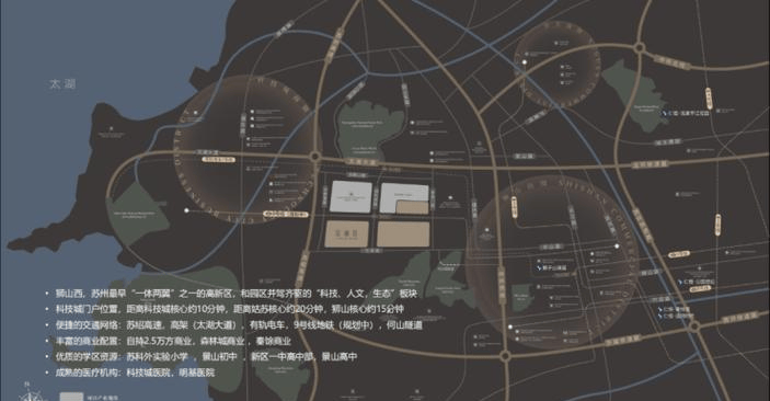 医疗配套:南京医科大学附属苏州科技城医院为首选医疗机构约7公里内,另有高新区人民医院和明基医院提供综合医疗服务,保障健康便利