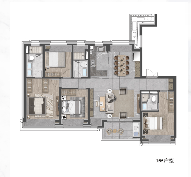 项目摒弃传统高密度塔楼模式,采用小高层+洋房组合,营造低密舒适居住氛围,外立面以玻璃幕墙+铝板+石材基座构成现代简约风格,搭配晶体塔冠设计,整体视觉通透、光感强烈,契合当代城市精英对美学与品质的双重追求。