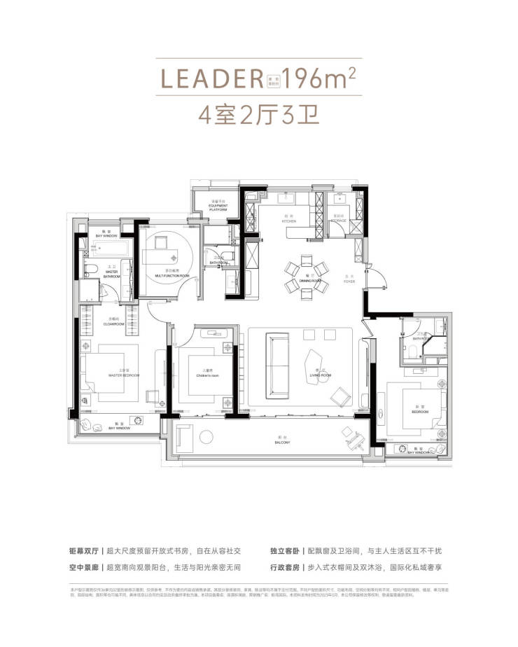 196㎡ 四室两厅三卫 6.8米横厅,中西双厨 约706万