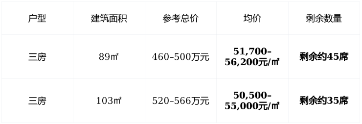 🏠 在售情况:89㎡起售,总价460万起,剩余房源不足百席