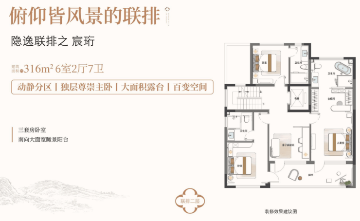 边户190㎡:4室2厅3卫,30㎡空中庭院+生活阳台