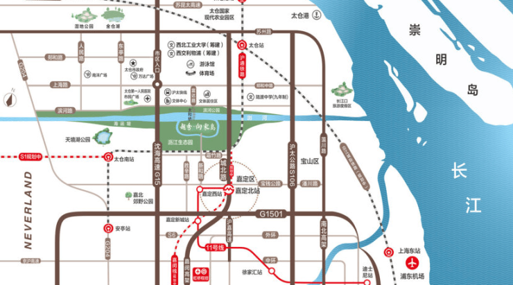 轨道交通:距规划中的嘉闵线十八港路站约800米,未来35min直达上海虹桥枢纽,实现沪太“半小时生活圈”。