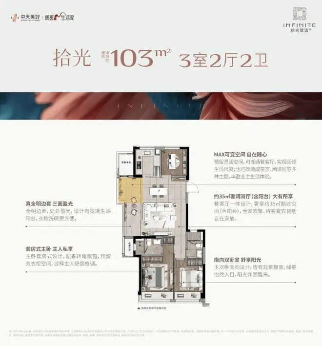 主力户型为建面约95㎡、103㎡三房,精装交付;