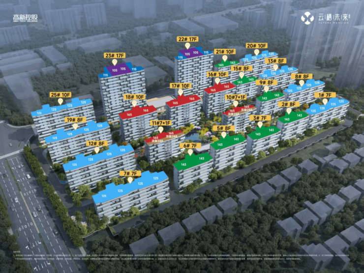 二、立体生态园境,让建筑生长于自然。云栖未来以约1.6低容积率的奢侈规划,于主城芯敬献一片自然栖居地。20栋7-10层洋房与2栋17层高层建筑错落布局,让建筑为生活让步,营造出开阔舒适的居住氛围;“一心一环两轴六园”立体生态园林,与超1400㎡的全龄架空层泛会所相合,构筑起一个全龄全时可享的活力生活场域,约600㎡中央水景、星际童趣谷、颐养森活馆等多元互动空间点缀其间,让推窗见景、下楼入园的诗意生活成为日常。