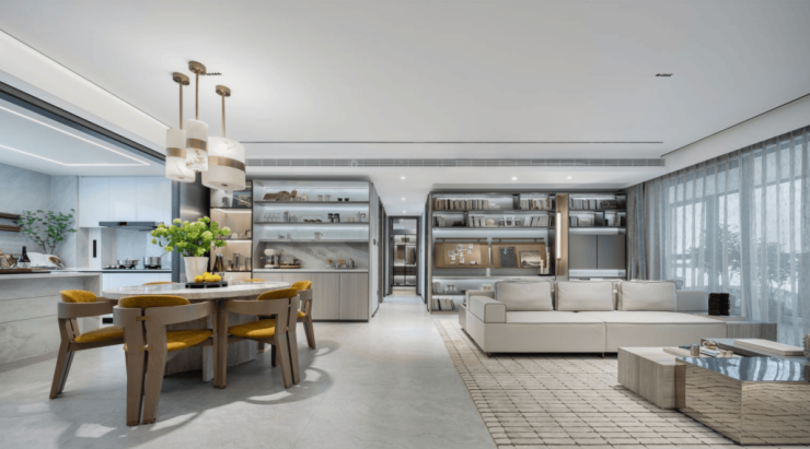 客、餐、厨空间一体,无论厨房烹饪,还是客厅观影,喝茶赏花,全家人在同一空间互动,相较于传统的户型,更重视家人间的互动交流。