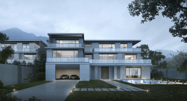 870㎡:超大尺度,七居配置,私家庭院面积可达80–300㎡,接近2亩