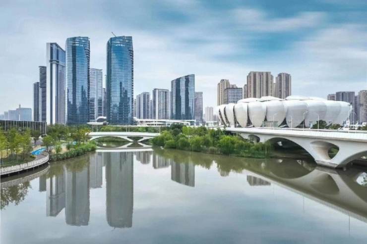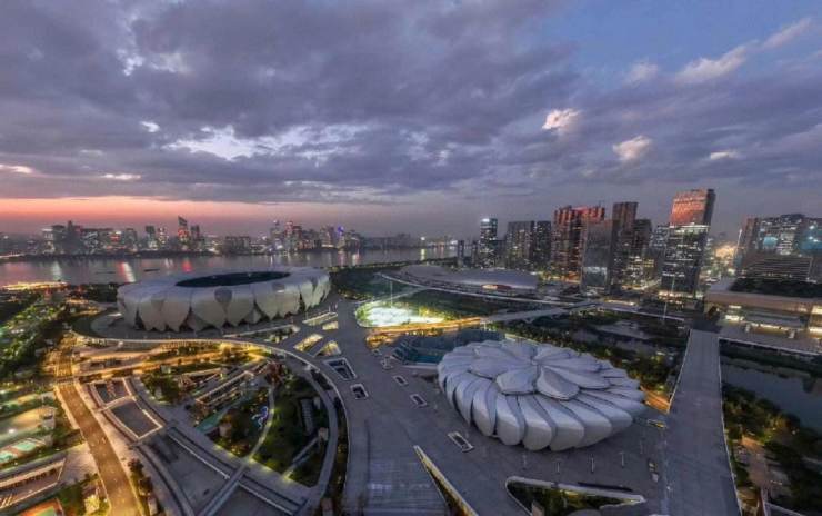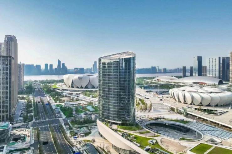 占据奥体"北斗七星"地标群天枢位,与杭州之门、莲花碗等地标共构城市中轴线,270°环幕视野同步收纳钱塘江景及奥体场馆群