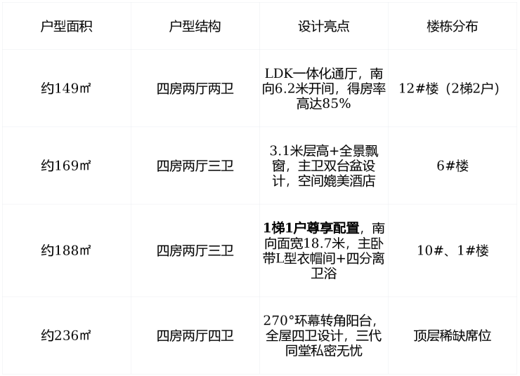 149㎡户型实现“小户型大格局”,得房率85%,远超市场平均水平。