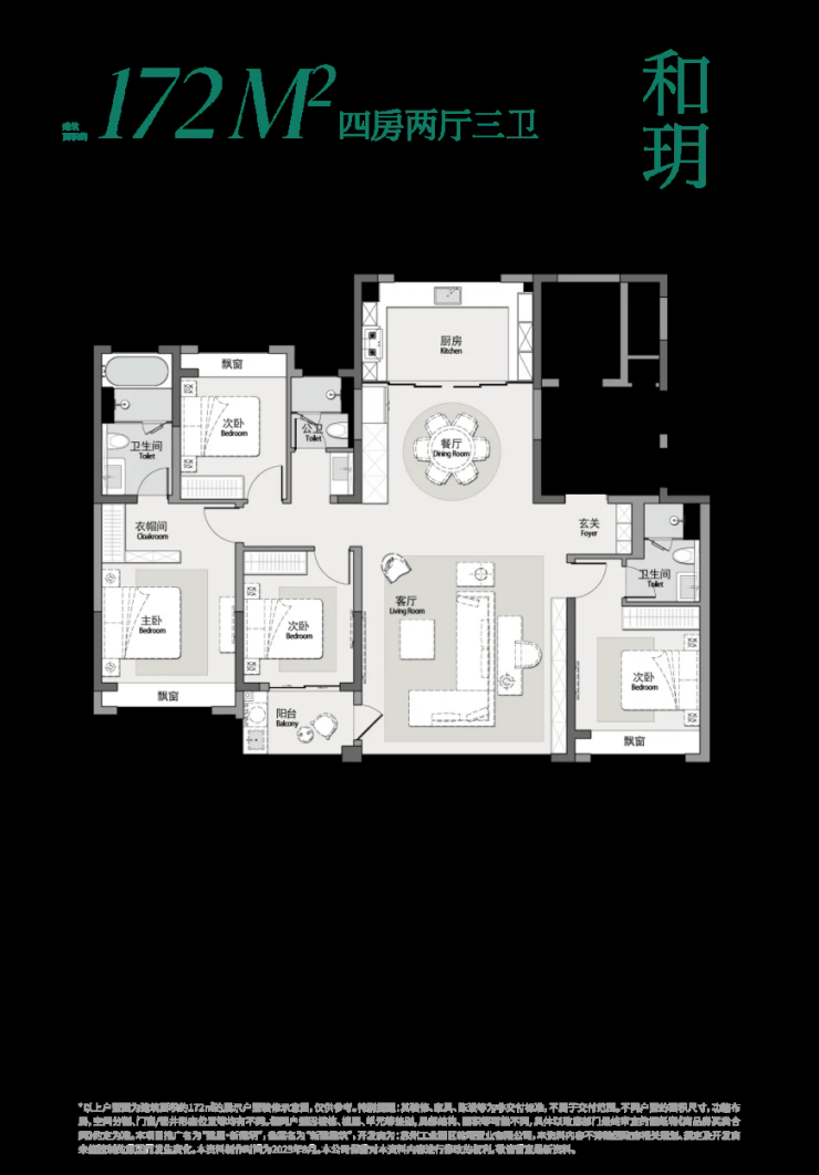 主力户型165–225㎡,全部为四房三卫,南向四面宽设计,客厅面宽达5.4–6.9米,层高3.1米,双套房布局,主卧带独立卫浴+衣帽间,真正实现“空间自由”。