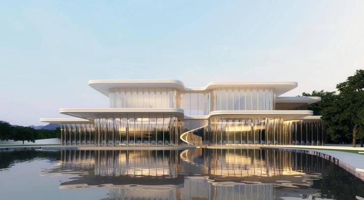 设计理念:外立面以太湖和奥体中心为灵感,采用扎哈·哈迪德标志性曲线,搭配全面屏玻璃窗,呈现流动的视觉效果
