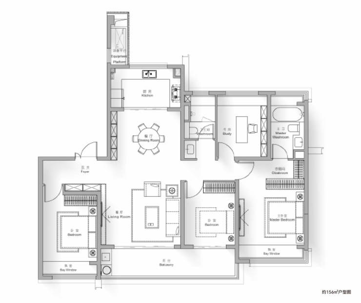 -建面156㎡的4居室,总价区间在580-650万。此户型分布于6、8、9、10号楼,采用2梯2户的梯户比设计,居住体验感好,减少了等待电梯的时间。楼层为12层的小高层,居住视野开阔,采光通风条件优越。