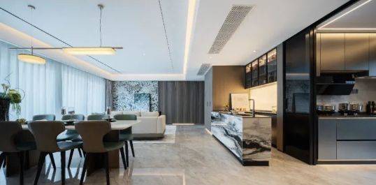 此外洄游入户光厅以情绪缓冲带,酝酿自带“呼吸感”的归家仪式;LDKGB大尺度一体化空间则形成大面宽家庭社交核心区;“客厅-空中庭院”动线,则让煮茶、观景、聚会的场景在踱步间自由切换;所有的一切都将重新定义住宅空间的物理边界与生活可能。
