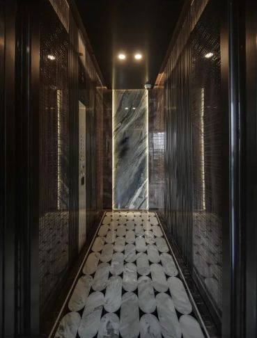 酒店式落客 大堂挑高达7.5米恢弘之势,开启渐进式的礼序归家情境风范之间,让停留成为至高无上的仪式。