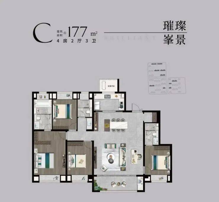 昆山城中璀璨璟园在户型设计上注重人性化,配套设施齐全。以下是部分户型配套:
