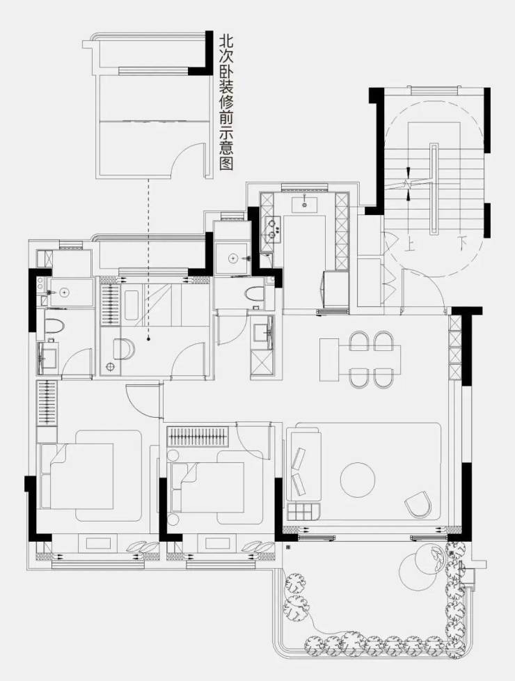 户型点评:为3房2厅2卫布局,三开间朝南,约6米南向横厅,连接约17平花园露台。