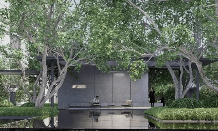 定制社交剧场:约1000㎡阳光草坪·架空层泛会所·风雨连廊·水景吧台