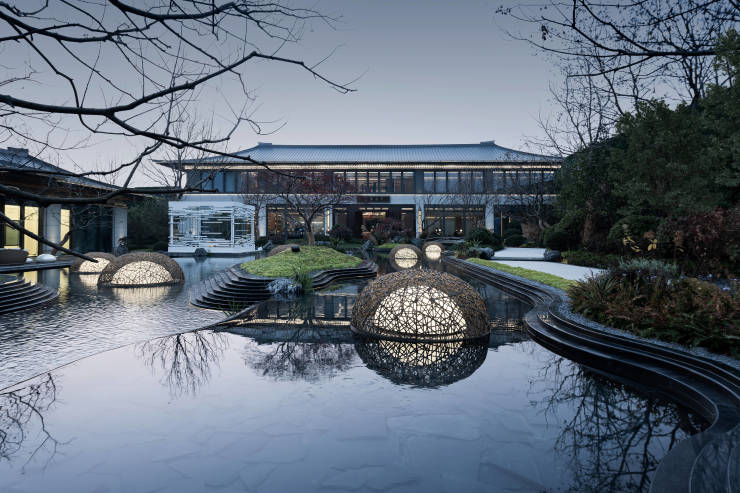 采用现代设计语言转译古典园林场景,营造文化底蕴与江南风韵