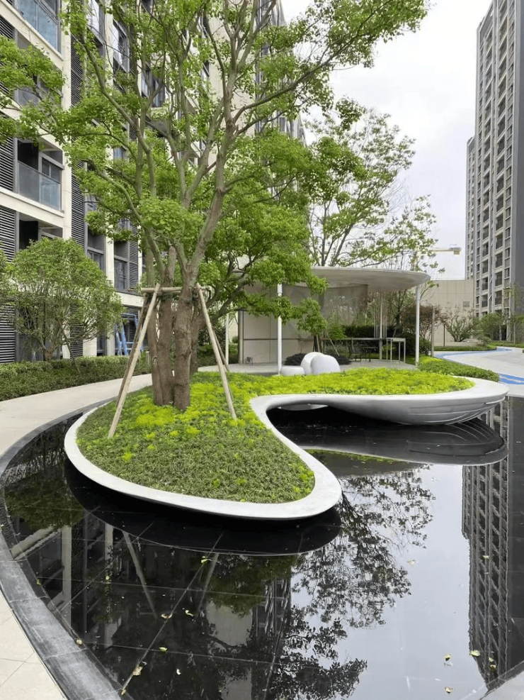 社区内打造“一轴三园”景观体系,涵盖中央景观轴、亲子乐园、健身区等