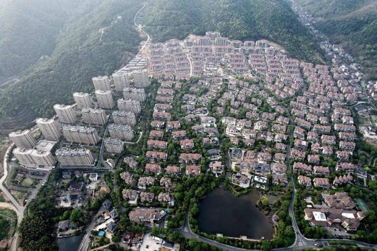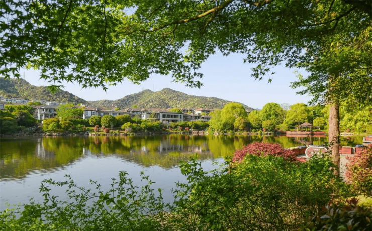 背靠午潮山国家森林公园,内部人工湖泊与坡地园林形成“山-林-湖-居”体系