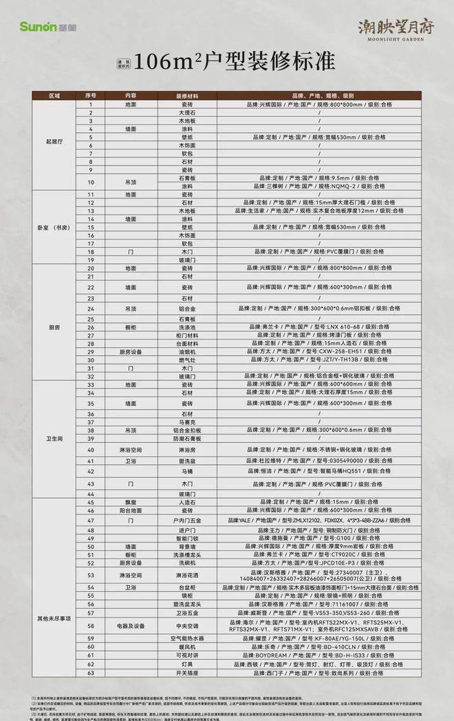 装修标准(过程稿,最终以《商品房买卖合同》及附件等协议为准):