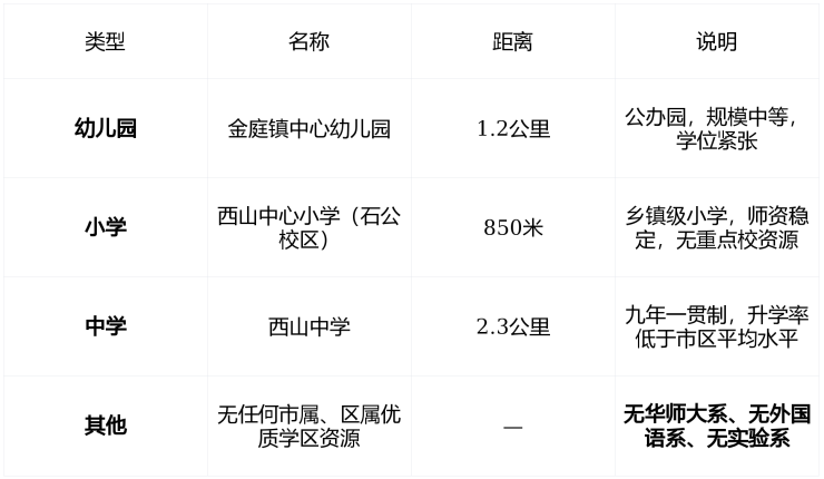 🎓 教育配套:无名校划片,基础教育自给