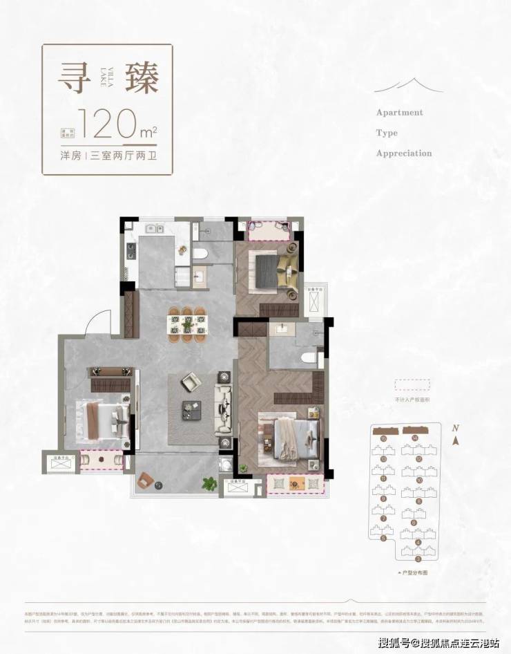 户型面积:建面约103-120㎡(三房两厅两卫)
